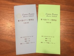 7月21日日曜日、ルナピアノの第9回ピアノ発表会を行います。