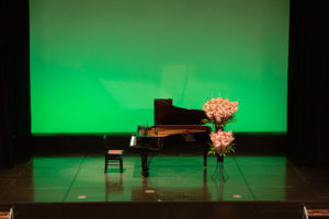 会場は町屋にあるムーブ町屋ムーブホール。こちらのピアノで演奏します。舞台のスポットライトが演奏する人にこれまた特別感を感じさせます。
